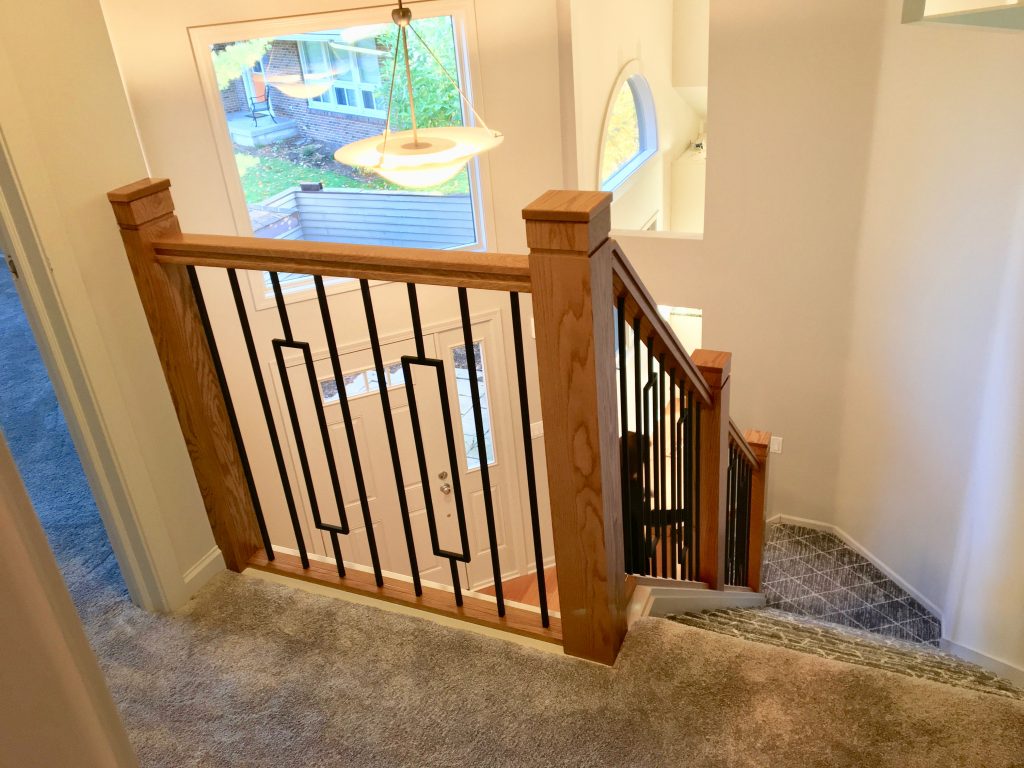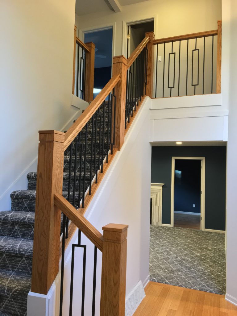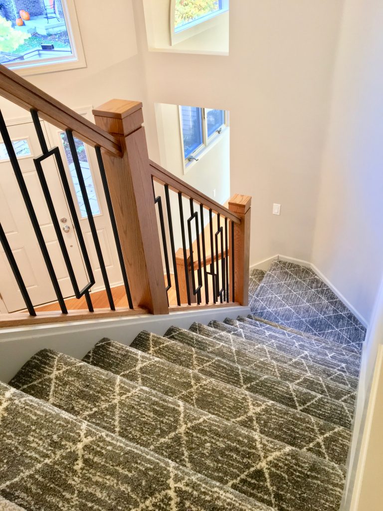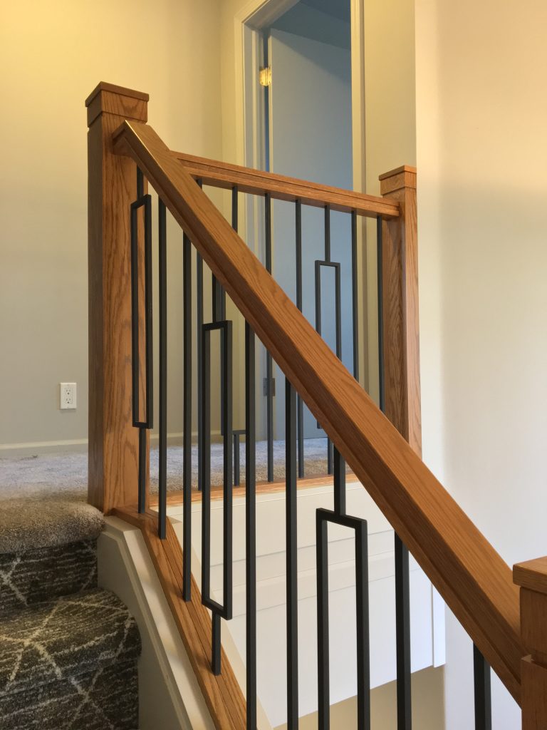 The Single Rectangle iron baluster takes center stage in this chic, modern stairway. Fun, geometric shapes from our Liberty series compliment the open and airy layout of this contemporary foyer, especially when paired with the Plain Straight iron baluster from the Versatile series. Sharp angles, combined with our 6004 Graspable Handrail, accentuate the geometric patterns of the carpeting. Sometimes simple is the ultimate aesthetic.