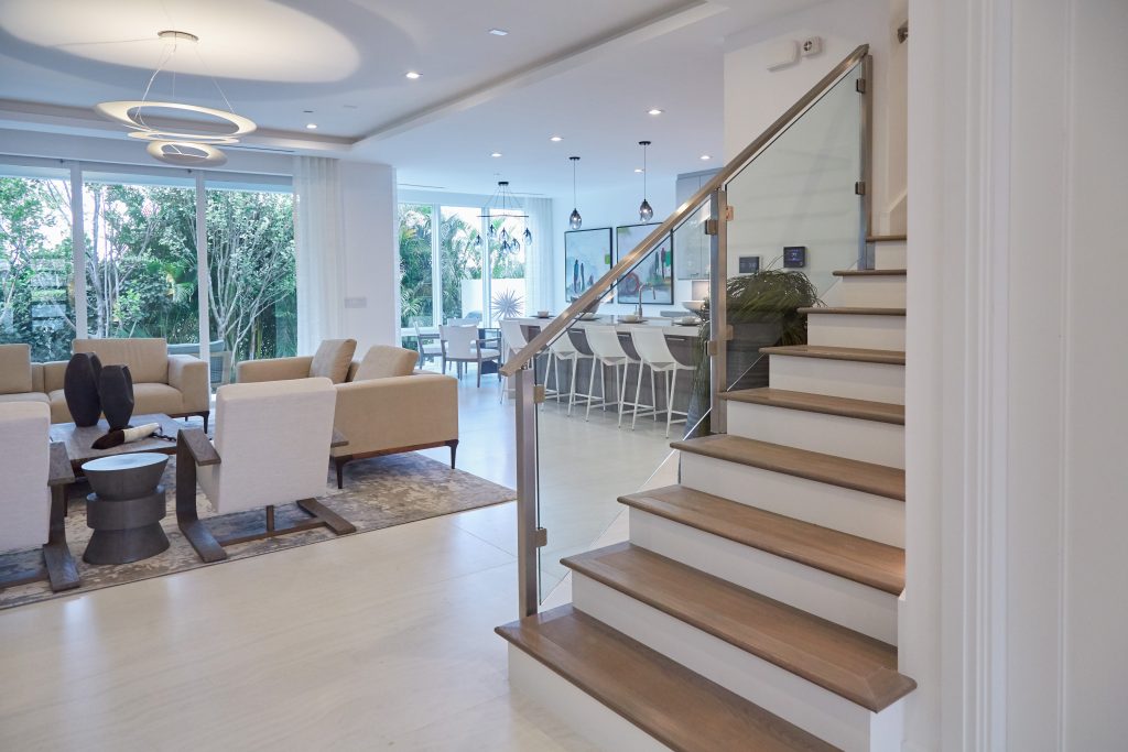 Glass railing systems are often seen outdoors–but we love the way these owners use glass railing to enhance their indoor space. Natural wood furniture stands out against bright walls and white decor, and clear glass panels highlight a beautiful staircase. Slim bump-out posts anchor the railing without obstructing its clear lines, while steel clips hold the glass gently in place. The result is a minimal, breezy aesthetic — it’s the kind of room guests don’t ever want to leave!