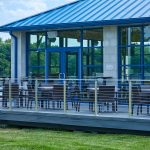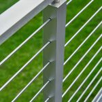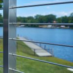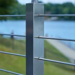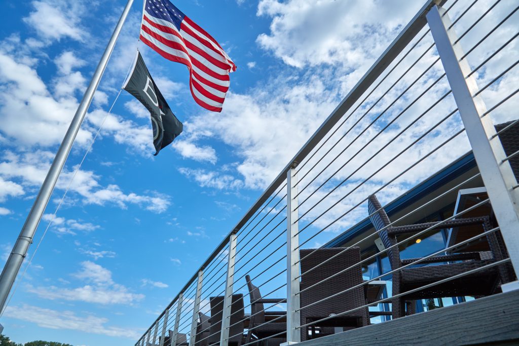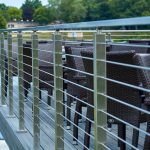 This gorgeous system was installed at a yacht club in Bellevue, Michigan, and shows off everything we love about rod railing. Its fluid, parallel lines blend with the view of the lake in the background while also complementing the gray tones of the deck. A sleek stainless steel handrail tops off the system — practically shining against the backdrop of lake and sky. This stainless steel rod railing system is simple, modern, and of the highest quality.
