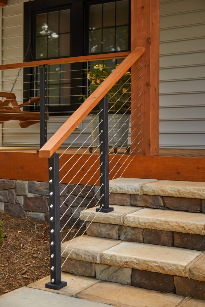 The powder coated black posts look great when paired with the black trim and hardware of the house. Many summer evenings will be spent on the deck enjoying the open view!