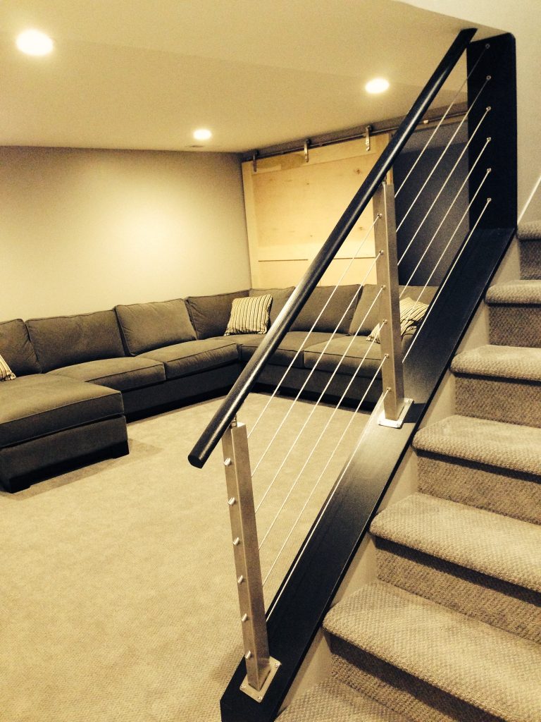 While surface mount posts are common, it is not unusual for customers to need angle foot posts for cable railing. Fortunately, we have years of experience learning and producing what customers need for their projects. In this photo, you can see our angle foot posts sitting on top of a knee wall cap. In addition, this project avoided using a third post by mounting directly into a wall. All together, the round handrail, stainless steel posts, and black knee wall cap work together to create a beautiful, modern system.