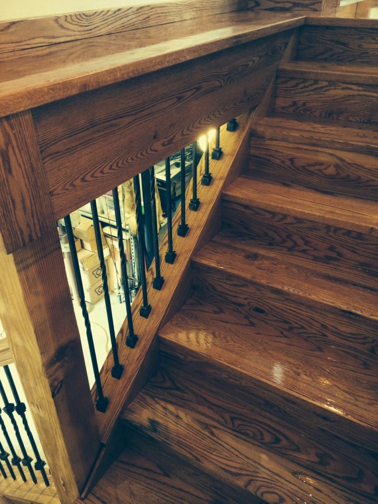 If you’re looking for a newel that is more decorative than a plain box newel, but less ornate than a fluted or recessed newel, the chamfered box newels are a perfect option for you. Subtle and elegant, these newels are available in multiple sizes. The larger 6 1/4″ x 6 1/4″ x 60″ newel is excellent for the bases and tops of stairways, while the 5″ x 5″ x 60″ is perfect for staircases that feature multiple newels or landings. This customer paired the newels with a simple, single twist wrought iron baluster to give the stairway a clean and classic feel.
