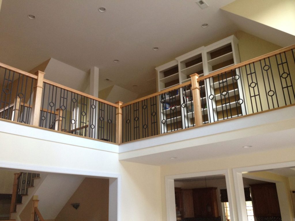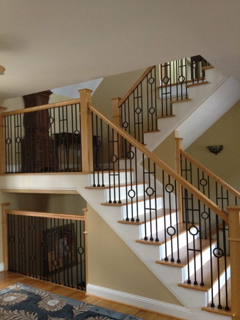 StairSupplies™ offers a great selection of wrought iron balusters. Among our 9 different series are dozens of styles that will enhance your staircase and give it your own creative touch. Some wrought iron balusters have exquisite designs that take up more space than more standard balusters. This is true of the triple bar iron baluster, which features three straight verticle bars joined by two horizontal bars. At its center is a single circle that serves as the piece’s elegant focal point. This customer finished their design by adding flat aluminum shoes to their balusters, giving them a sharp, clean finish.