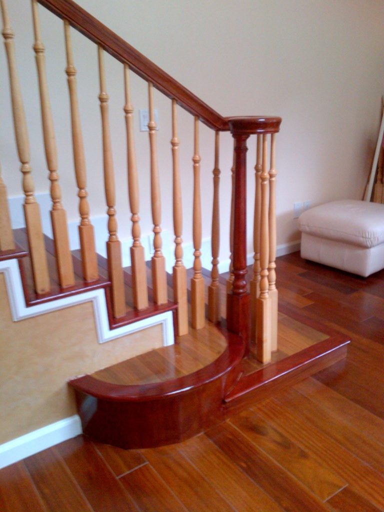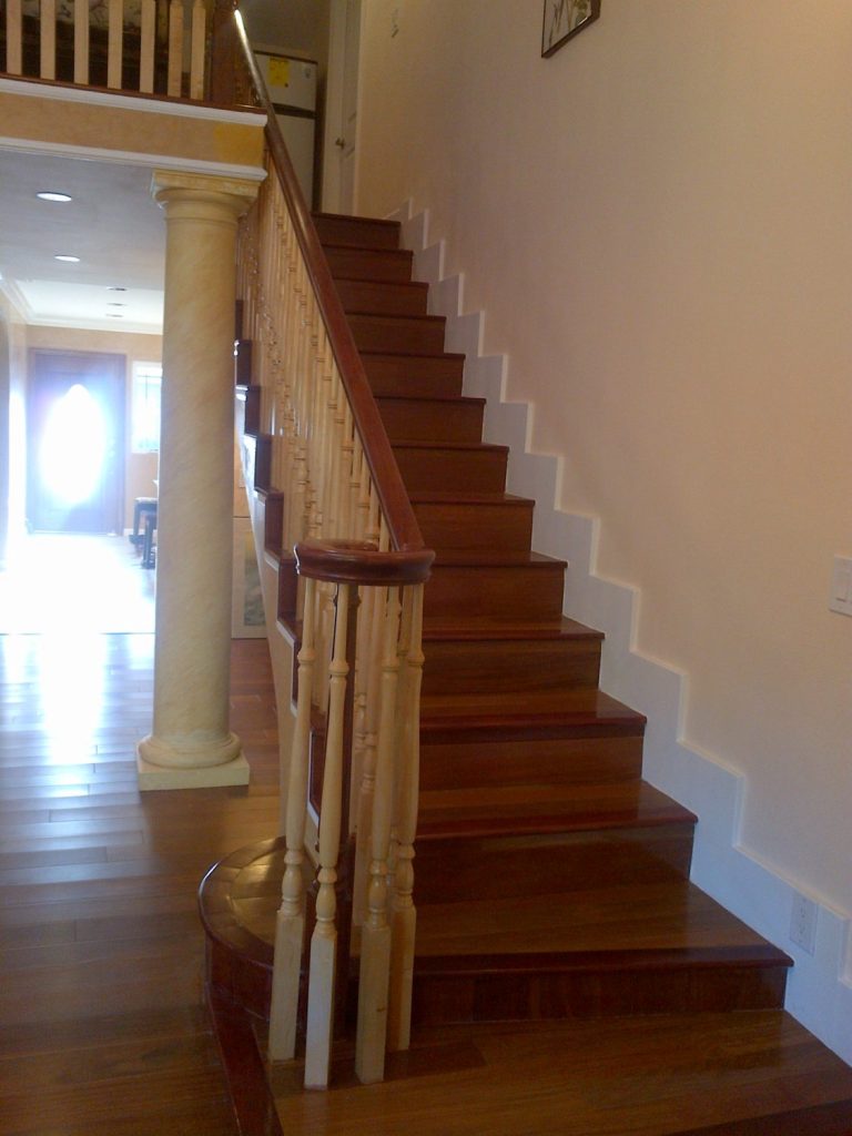While some people use handrail fittings for code purposes, others elect to attach them for aesthetic reasons. This project utilizes a left hand volute at the bottom of the stairway. A volute is a fitting that attaches to the end of a handrail to give it a gentle curve. Volutes give a staircase both an elegant and inviting feel. In addition, they look wonderful with a turned newel on a starting step. Along with the volutes, StairSuppliesTM has an array of handrail fittings, so you can find the perfect match to your style.