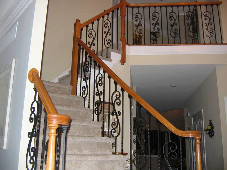 StairSupplies™ is able to manufacture bending handrail at any angle you desire. Notice how great the Scroll Series Iron Balusters look with the bending handrail and how the volute into the turned newels at the foot of the stairs completes the effect. Click here to view your entire Handrail offering.