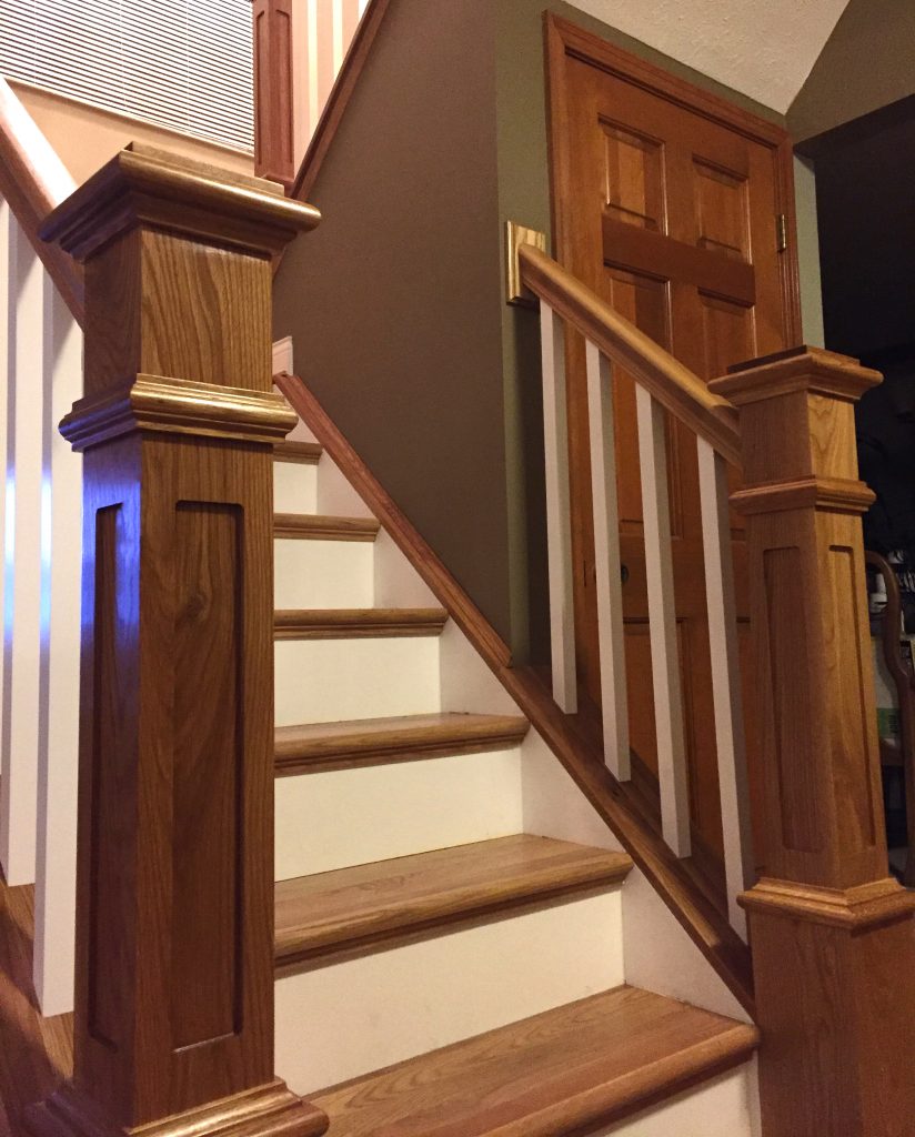 Painted wood balusters are wonderful additions to contemporary or cottage style homes. These imported painted balusters are 1 1/4″ square and 42″ tall. Furthermore, they come painted and ready to install. In this project, the balusters serve as accents against the stained handrail, box newels, and treads. As a result, the customer has a clean, blended staircase that would make any homeowner proud.