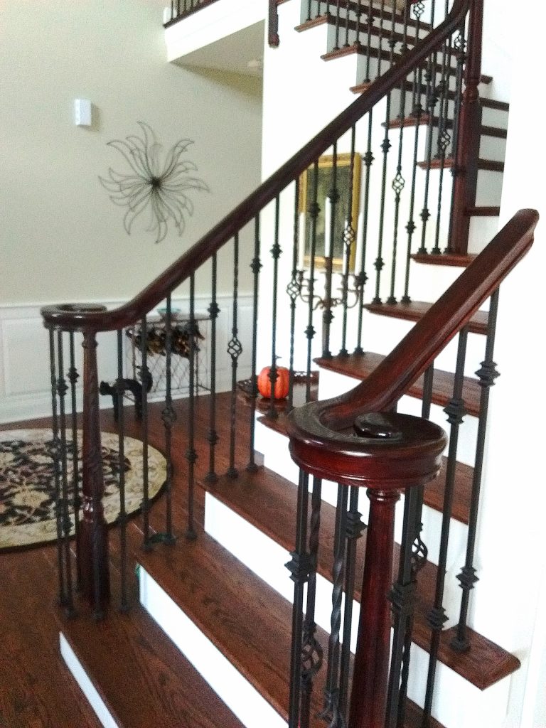 For these customers in Pennsylvania, wrought iron balusters were the ideal, modern choice for their staircase. This project makes use of two different series of balusters: the Versatile and Twist series. The Versatile balusters in these photos have 2″ tall knuckles. Additionally, the Twist baluster profile in this project has the single, 5 1/2″ ovular basket at its center. Mixed together, these balusters frame and enhance this staircase. StairSuppliesTM offers nine unique series of wrought iron balusters. With so many design options, you are sure to find a beautiful baluster design for your home.