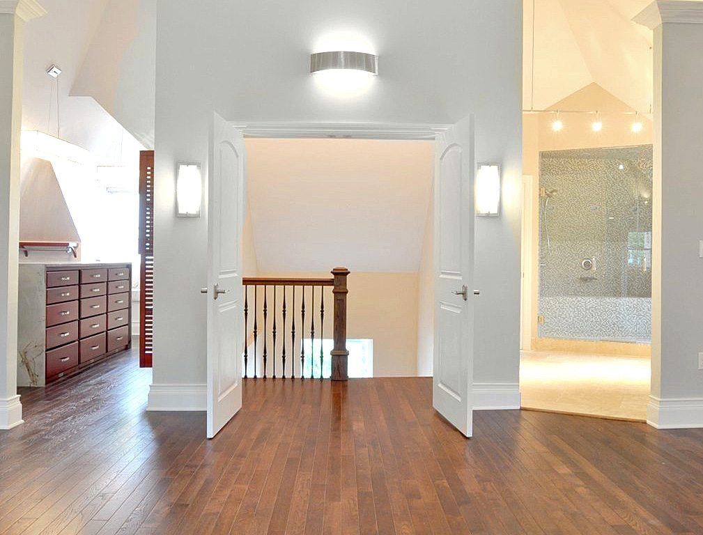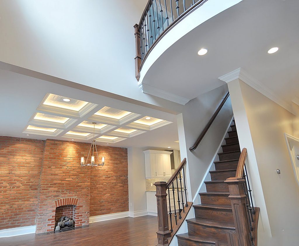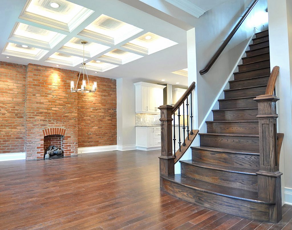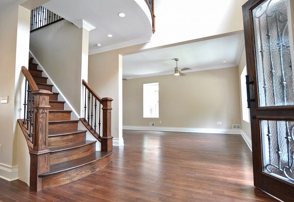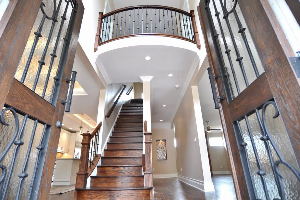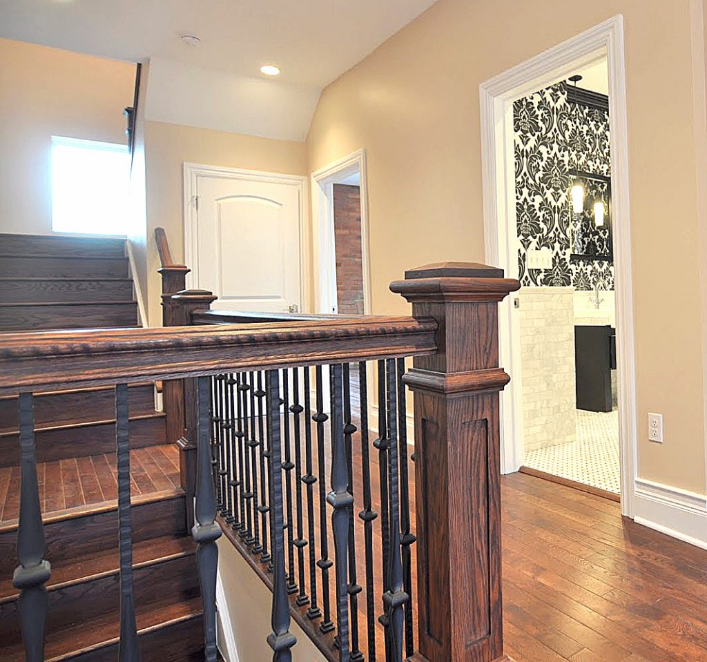 Homes with high ceilings and open concepts are perfect environments for our elegant stair parts. In this project, the customer selected decorative recessed panel box newels to go with complimentary straight and bending handrail. We manufactured these pieces out of beautiful red oak. Along with the wood stair parts, this customer purchased wrought iron balusters from the gothic series.