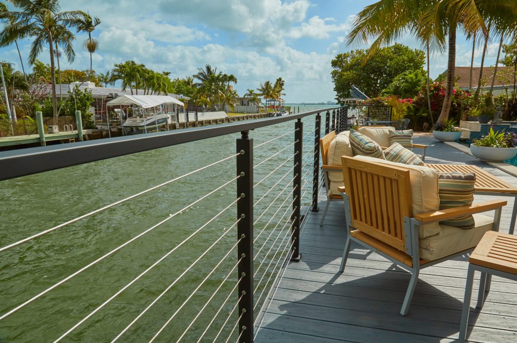 At this waterside home, a customer used black cable railing posts to accent the border of his gorgeous back deck. The powder coated posts pop alongside the lush, green palm trees and the blue Florida sky. A gate with rod railing infill provides an easy entrance and exit point to this exquisite getaway where the homeowner can sit back, relax, and enjoy his view for years to come.