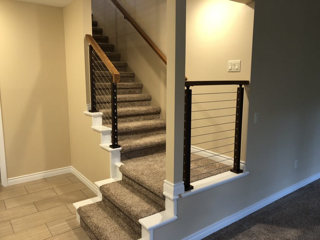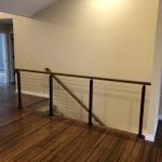 No project is too small to be enhanced by the sleek and classy look of cable railing. This staircase features white oak handrails that perfectly accent the existing hardwood floor upstairs. Aluminum posts in Copper Vein powder coat, one of our most popular finishes, is both subtle and warm. The result is a look that brings the interior of the home to a whole new level of chic sophistication.