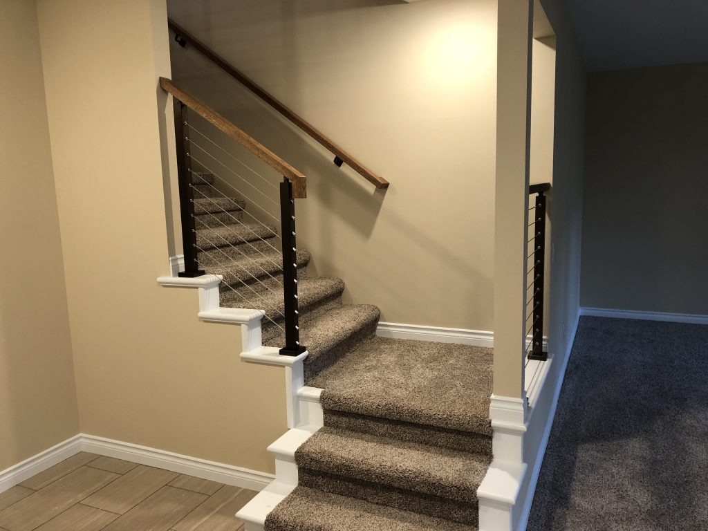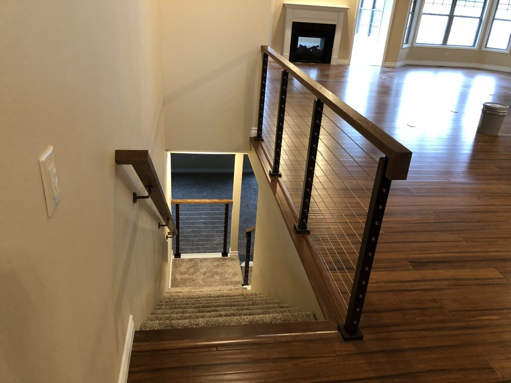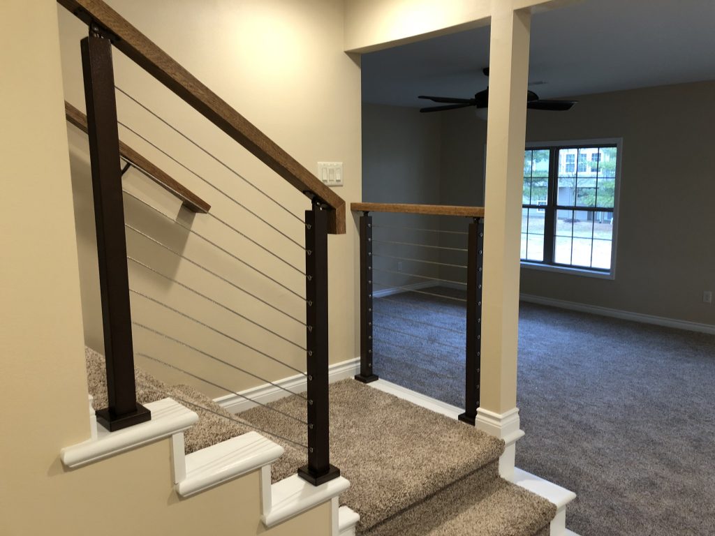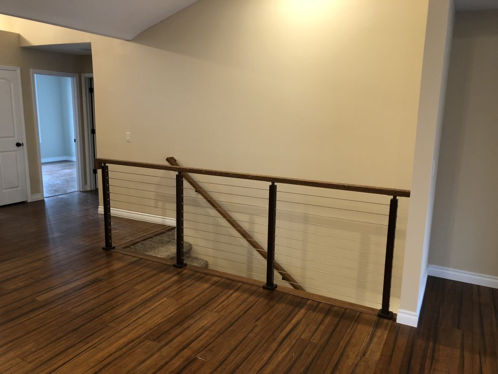 No project is too small to be enhanced by the sleek and classy look of cable railing. This staircase features white oak handrails that perfectly accent the existing hardwood floor upstairs. Aluminum posts in Copper Vein powder coat, one of our most popular finishes, is both subtle and warm. The result is a look that brings the interior of the home to a whole new level of chic sophistication.