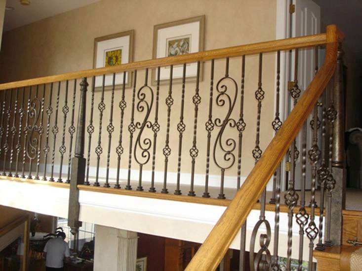 This stairway illustrates the flexibility and customization abilities of StairSupplies™. This customer used two goosenecks to make the turn on the stairway look easy and seamless. Further, this stairway features Scroll Series Iron Balusters along with Twist Series Iron Balusters. The treads stick out magnificently against the white stringers and the finished turned newels match the iron balusters. Click here to view your entire Wood Handrail Fittings offering.