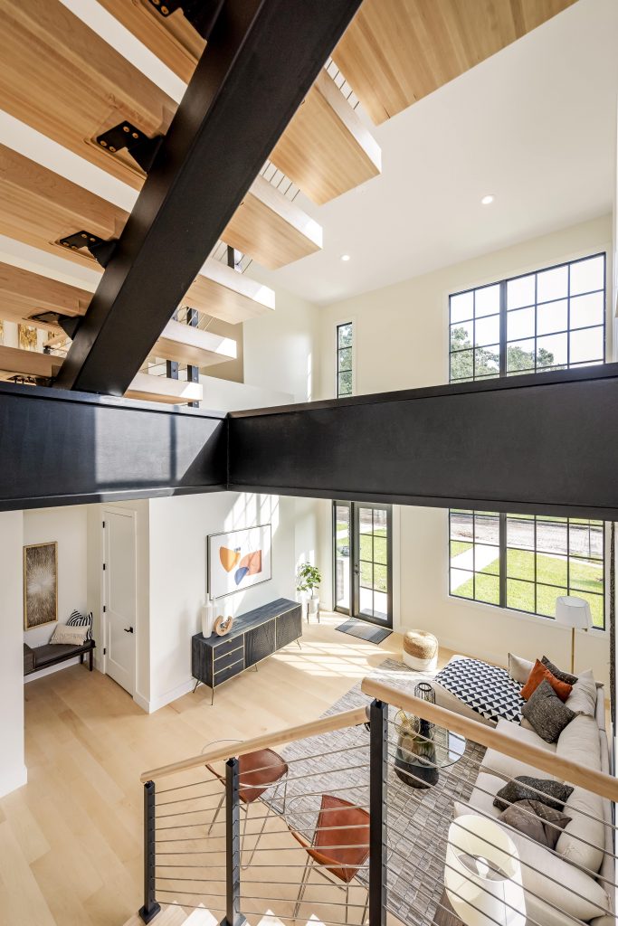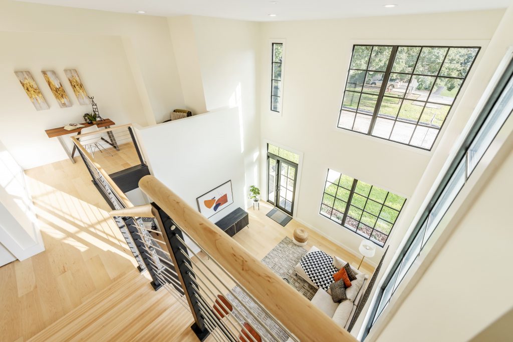 Richard describes their new home this way; “We’re happy with what we have now, thrilled. We have a very open-concept living room, with floating stairs on the left in front of the kitchen. They go to the master suite and laundry, past a small loft that we use for an office space. The second FLIGHT system takes you up to the third-floor office.”