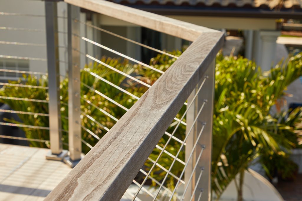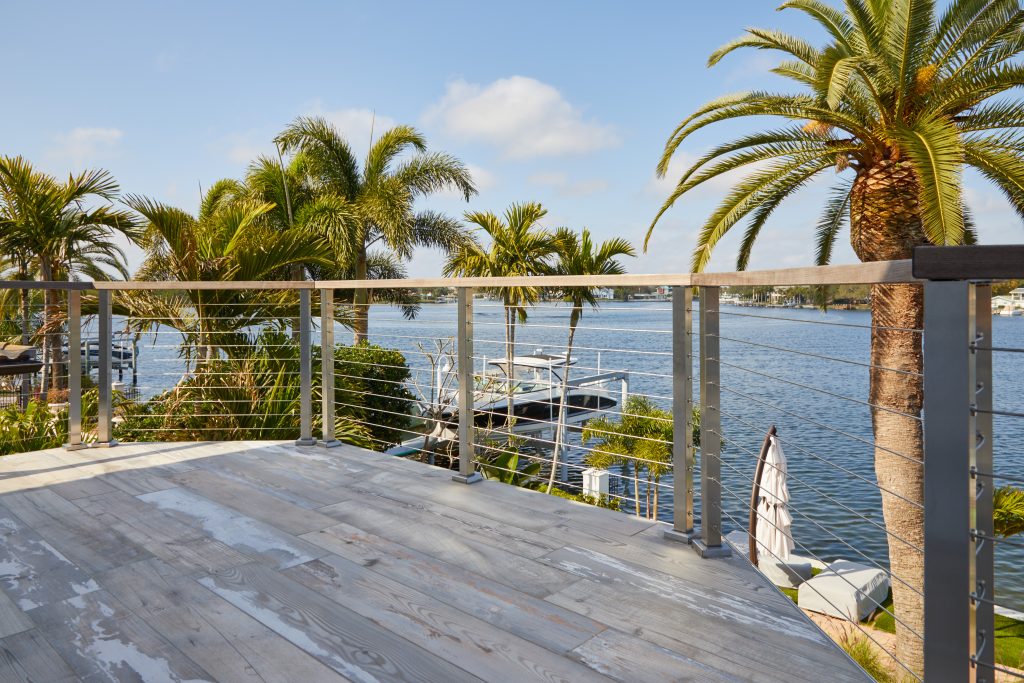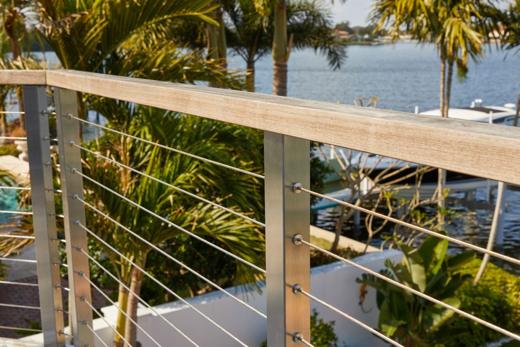 Railing on the coast is exposed to the harshest of elements, and durability is important. These Surface Mounted Cable Railing posts were constructed out of marine grade 2205 Stainless Steel and provide extreme corrosion resistance. To match the wood of the deck, the homeowner went with Viewrail’s exterior cable railing wood handrail, which has held up to the test. This cable rail system provides heavy duty results while remaining sleek and not obstructing the view.