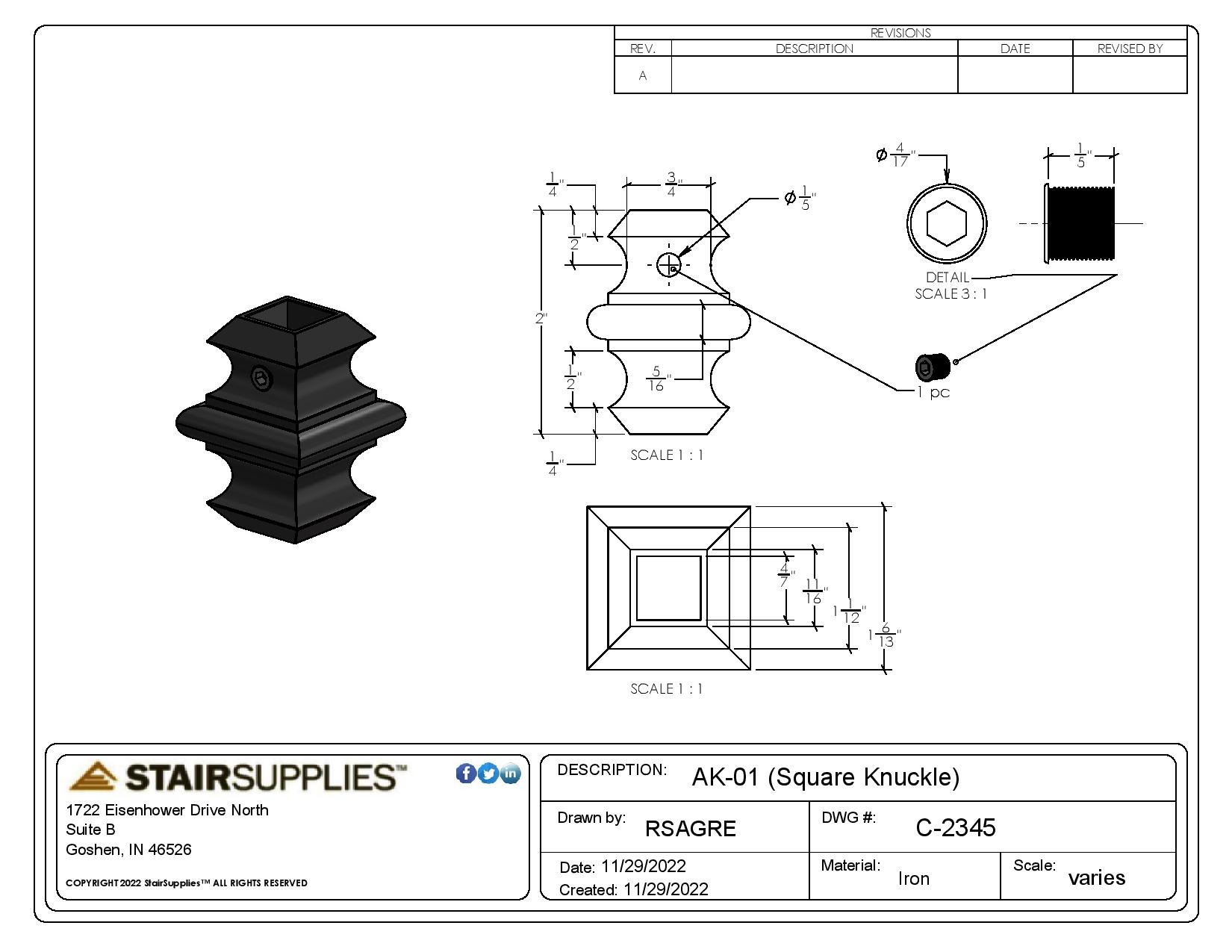 - Used with 1/2″ square iron balusters as an additional aesthetic piece
