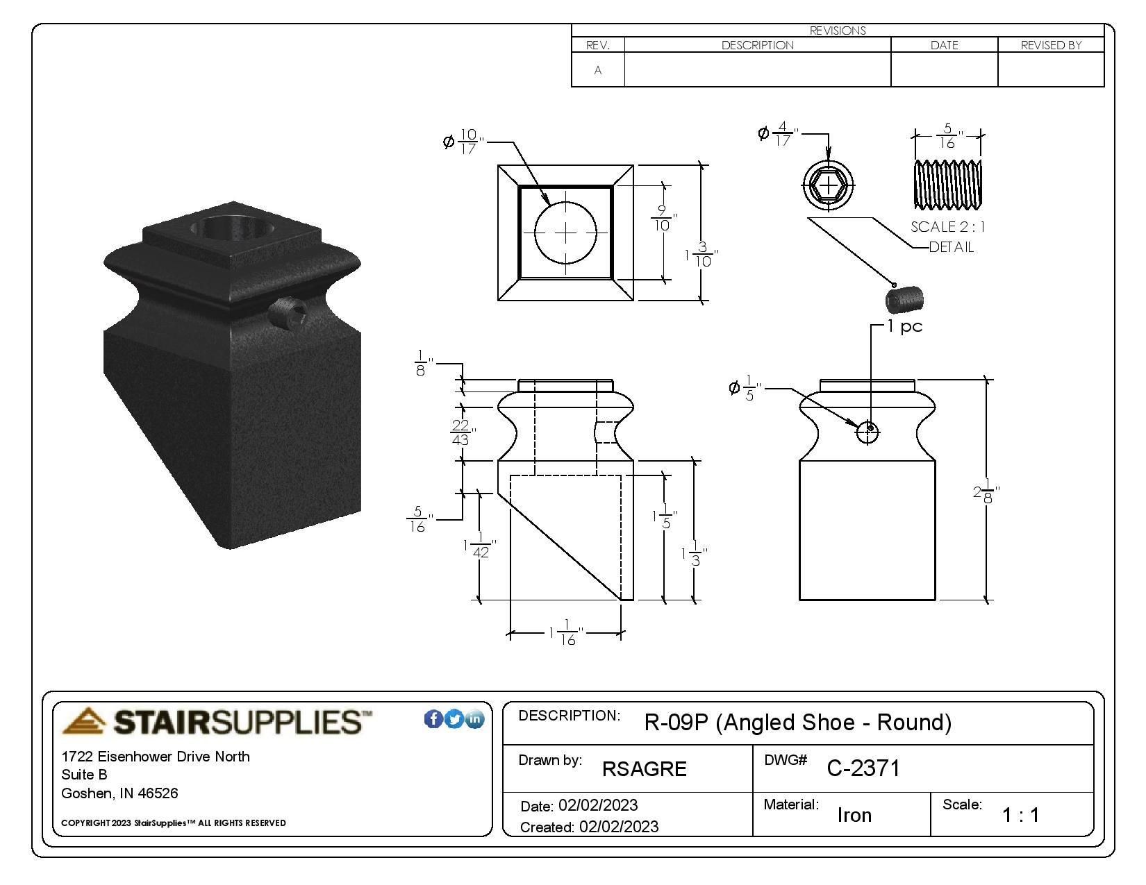 • For 1/2″ round iron balusters on angled surfaces to cover iron baluster mounting holes