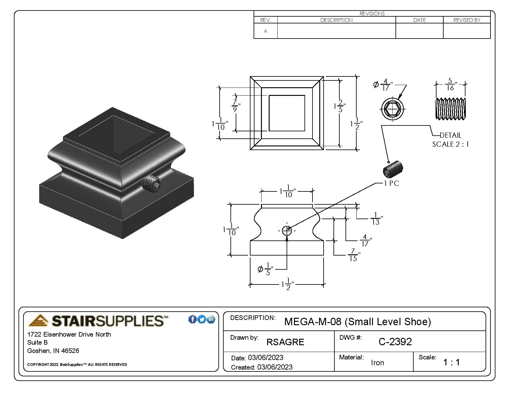 2392 3/4″ Small Level Shoe