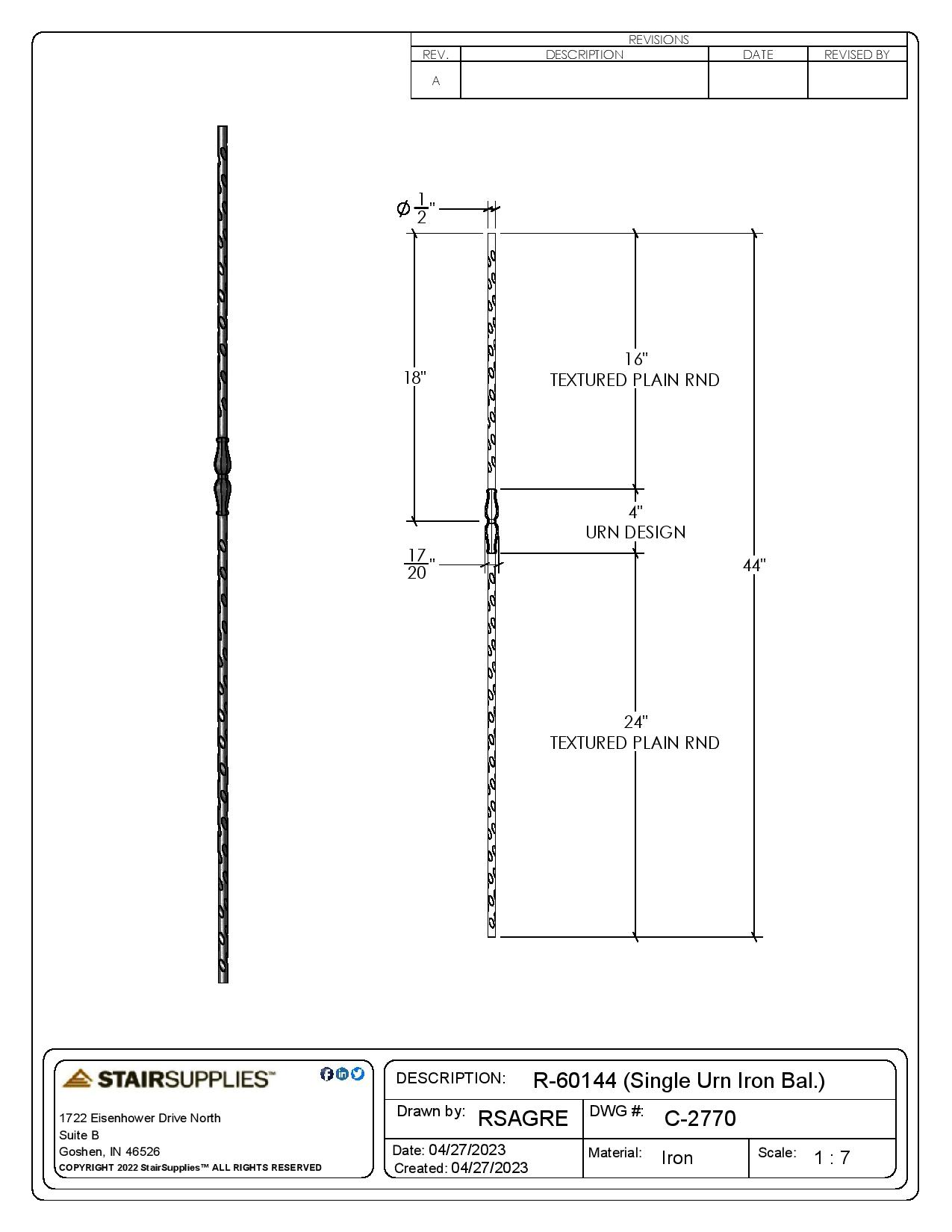 Key Features: Single Urn Iron Baluster