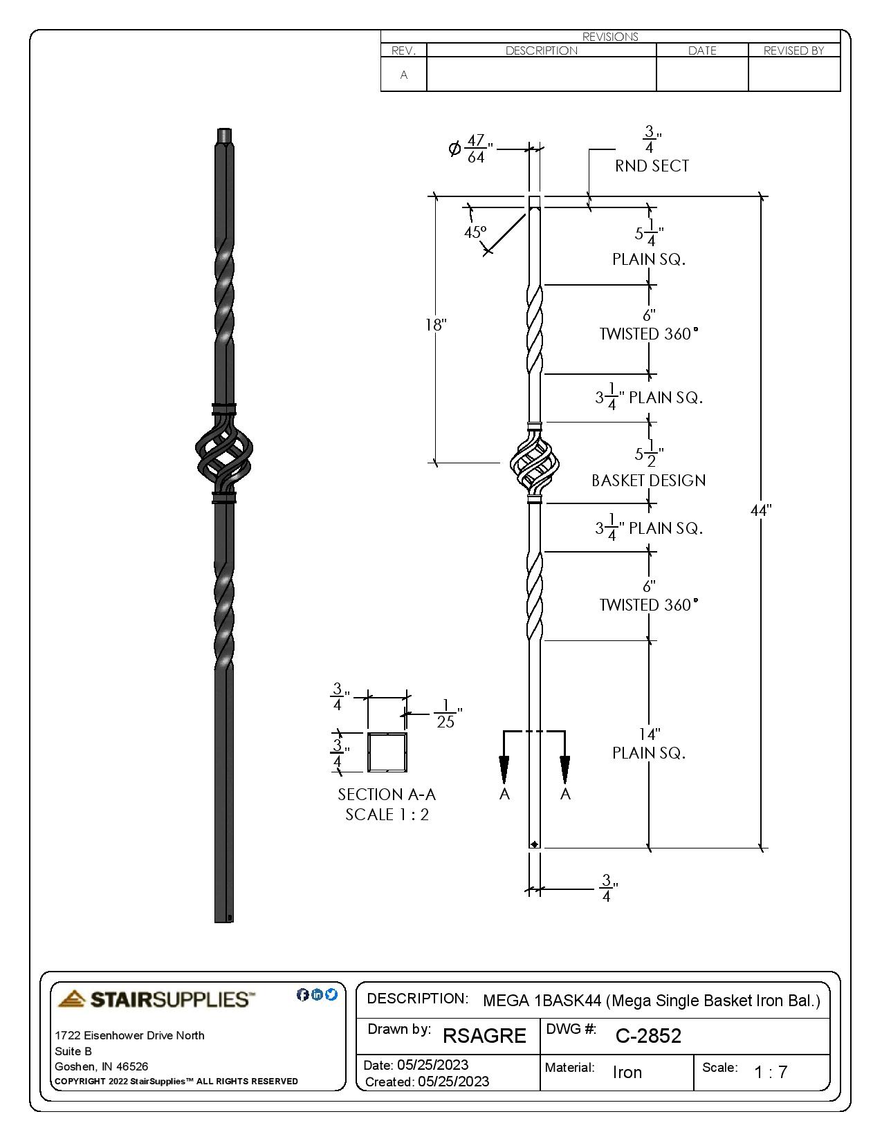 - Hollow Balusters available in Black, Satin Black, Antique Bronze, Oil Rubbed Copper and Oil Rubbed Bronze