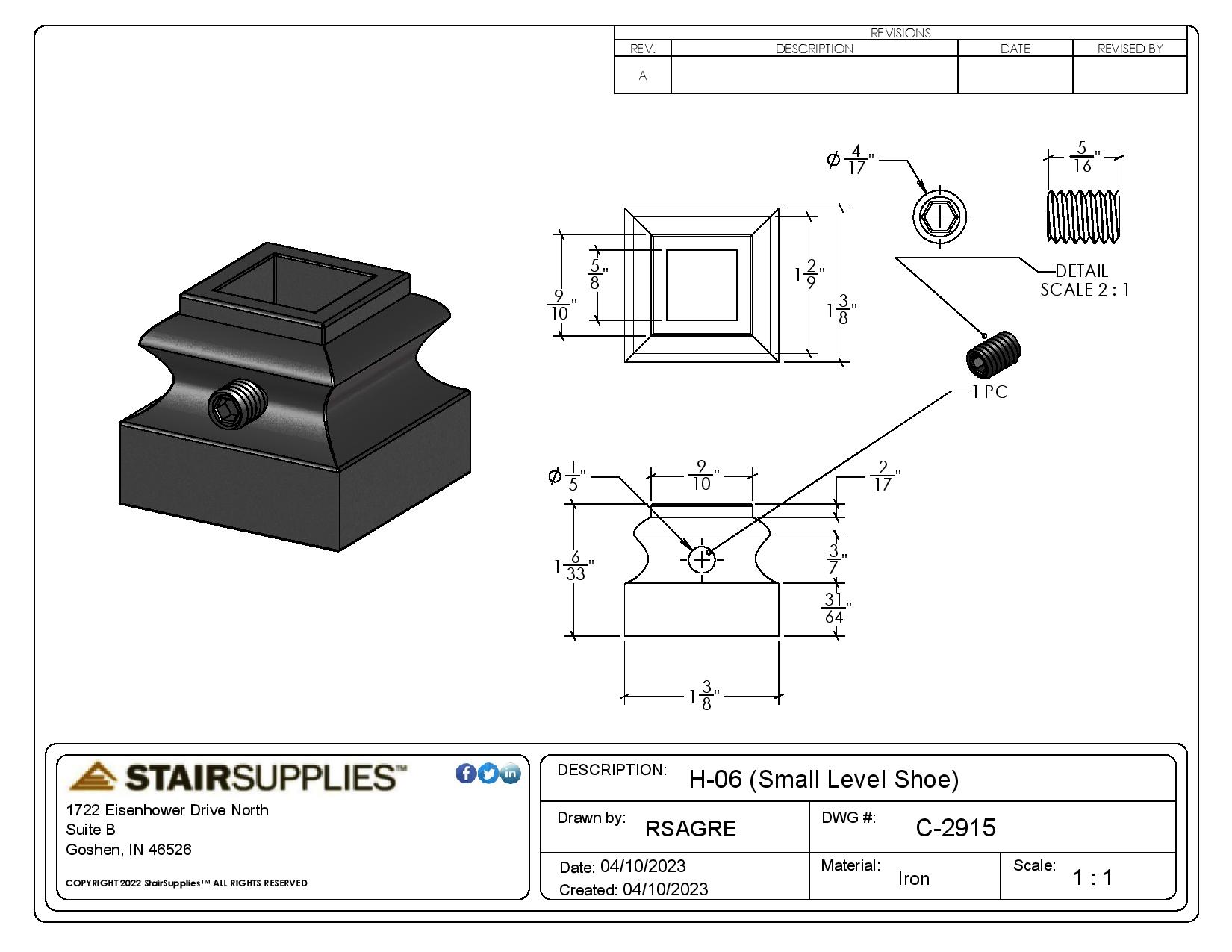 - For 9/16″ square iron balusters on level surfaces to cover iron baluster mounting holes