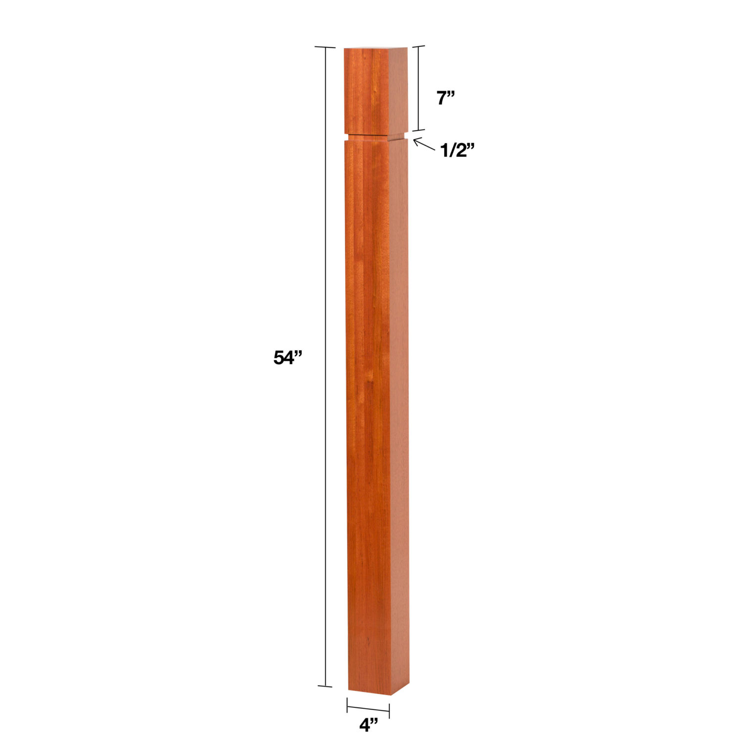 The 4240 Box Newel is a 4″ square that stands 54″ tall, with a 7″ top box, and a 1/2″ shoulder trim. When split, your newel would come 4″ x 2″, 54″ tall, with a 7″ top box, and a 1/2″ shoulder trim.