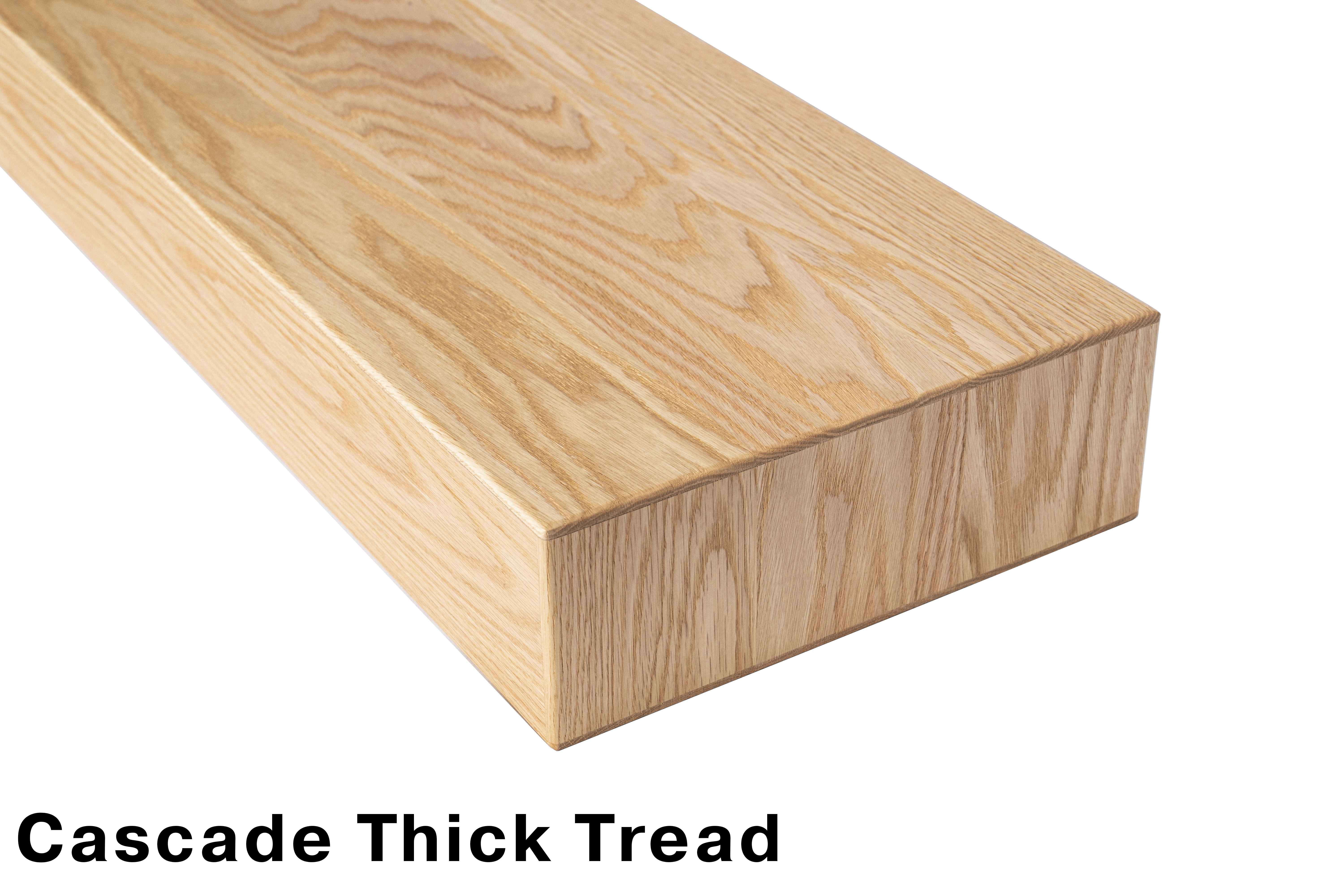 Ideal for floating stairs, the 3” Thick Stair Treads are crafted with meticulous precision. Superior construction and high-end finishes make StairSupplies™ thick treads stand out. Thoughtful details like a subtle 1/8” bevel on each edge and the eye-catching face grain style add to the overall effect. Pair these stunners with products from our Viewrail line, which offers cable railing, stainless steel posts, and floating stair system.
