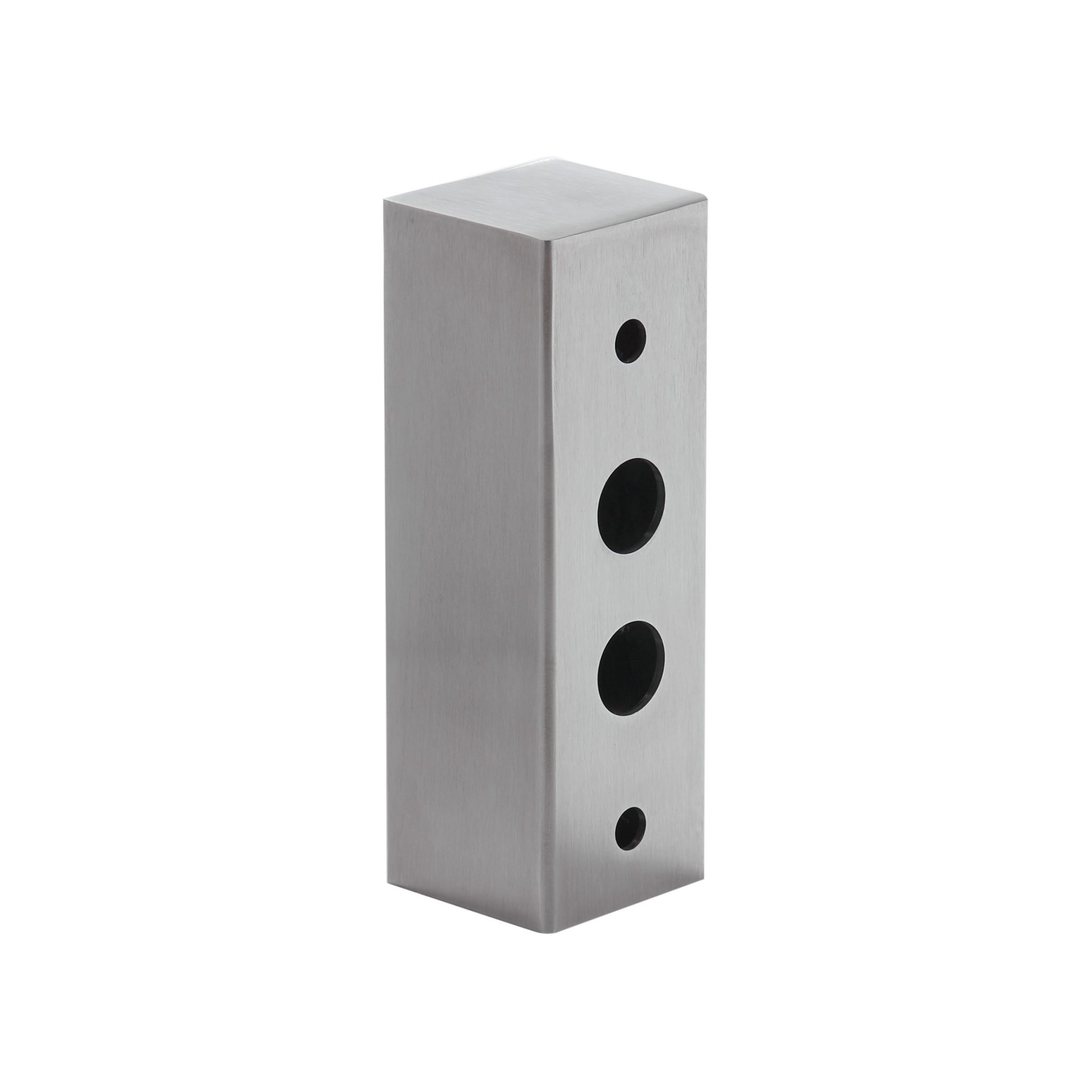 “G” – The “G” post is designed to transition from a stair (angled) section to a level section while maintaining your handrail height. It has 5/16″ holes drilled on opposite sides of the post. Recommended fittings: “Adhesive Sleeve” (20, 22, or 24 sleeves depending on handrail height). Additional Hardware: The Postside Handrail Bracket will make transitioning this handrail much easier.