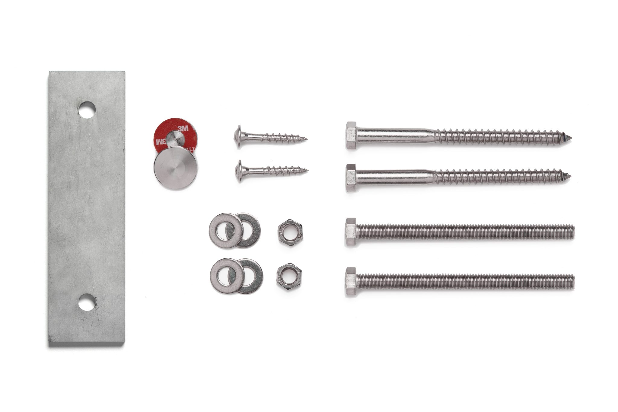 The back side of the Bump Out Slim Side Mount and the mounting plate both have 3/8″ holes. The front side of the post has 13/16″ holes that can easily be covered by our “Slim Post Plugs” for a clean look. We also include mounting hardware for two types of applications, one where there are 3, 2×8’s available which is a 3/8″ x 6″ lag bolt. Alternatively, we include an identical plate to the one on the post that can be used with 2, 2×8’s and the included 3/8″ x 4″ bolts, nuts & washers. Whatever the application, we provide the necessary installation hardware.