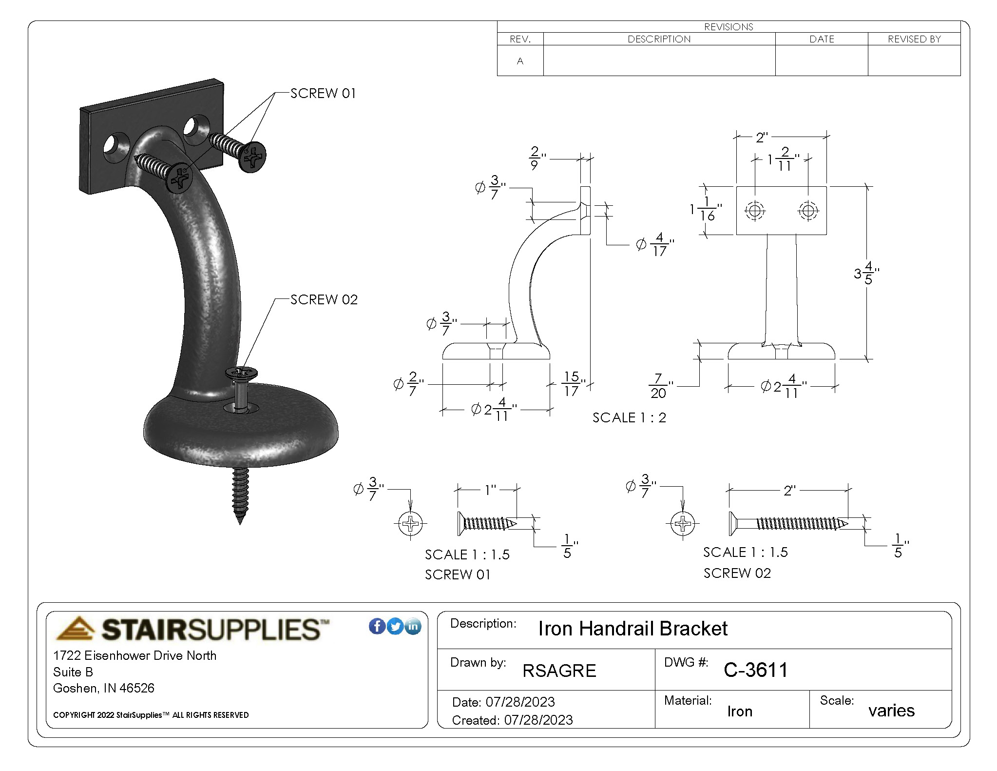 This heavy duty iron bracket present a more rustic feel for your wall mounted handrail with its strong, textured aesthetic. The single hole design is far easier to use than any other style. The smooth lines are attractive and safe. You will love your products from StairSuppliesTM.