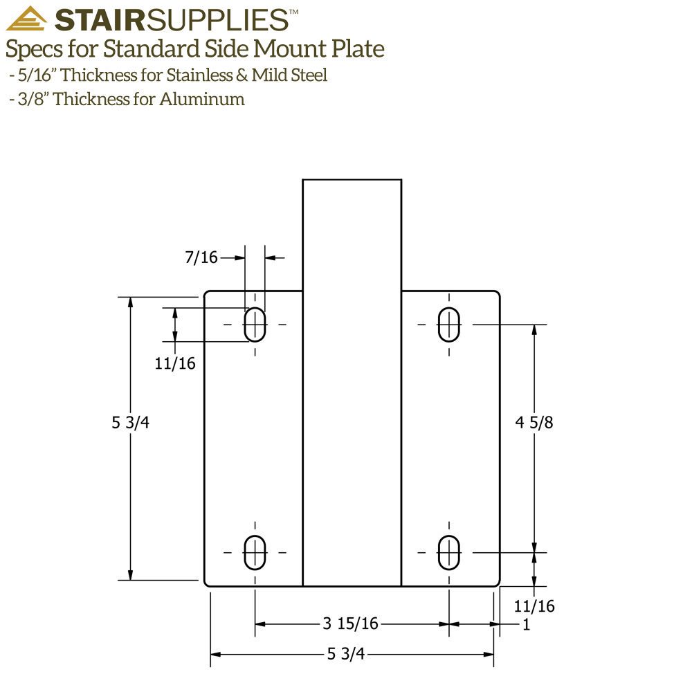 Mounting feet come with 4 holes (6 holes on “B” posts) for 3/8″ fasteners. The handrail bracket also comes with 6 pre-drilled holes to secure the handrail.