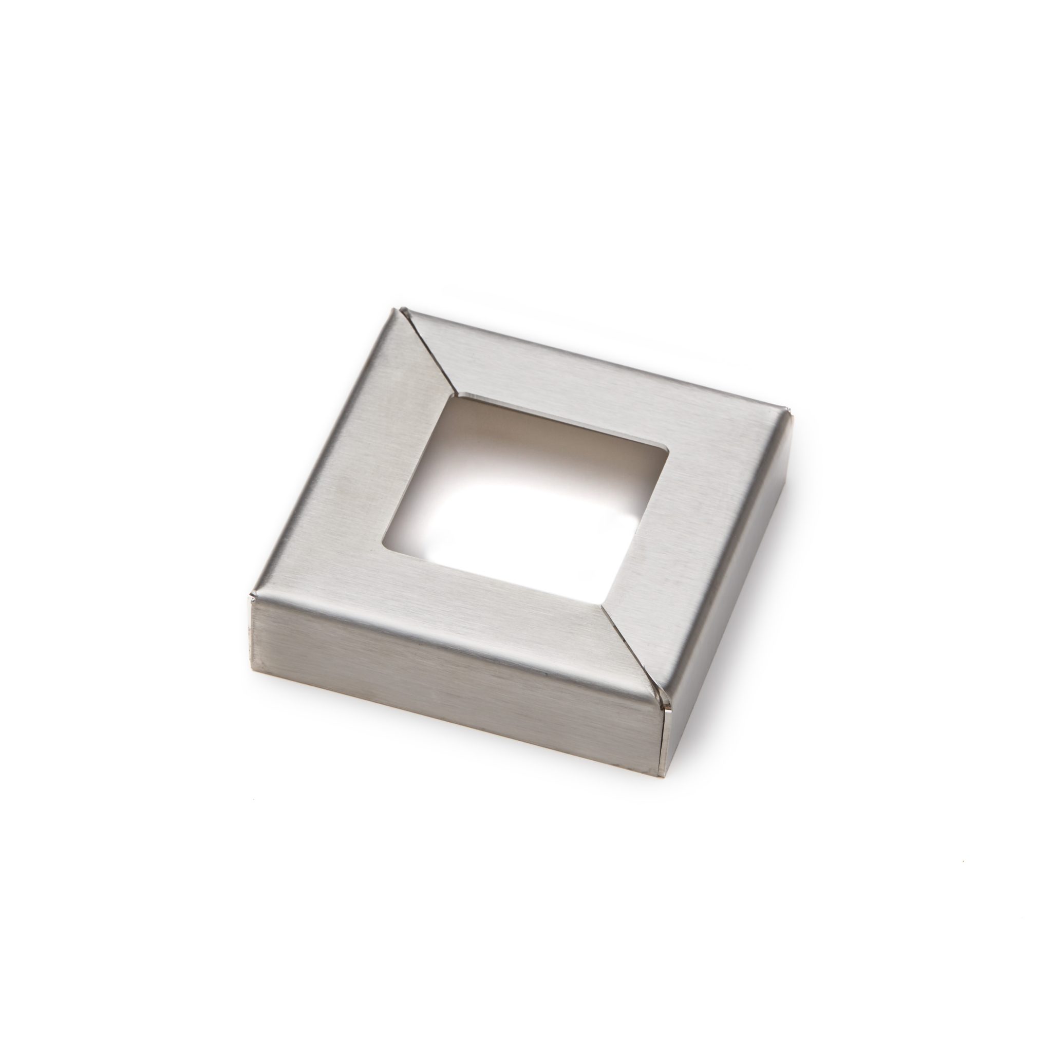 Split foot covers are created to hide the post mounting screws, giving it a clean finish. The split allows the foot cover to be installed after the post has been mounted and the cable or rods are installed.